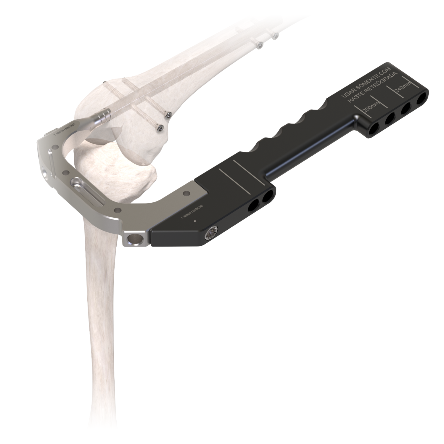 A Haste Intramedular Femoral Retrógrada | Anterógrada é um dispositivo médico desenvolvido com o objetivo de promover a estabilização, correção e fixação óssea, porém concebido unicamente para auxiliar a regeneração óssea e não para substituir as estruturas normais do esqueleto humano. Possue corpo cilíndrico e canulado, alongado em forma de tubo, moldado anatômicamente para ser implantado no canal intramedular do fêmur.